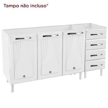 Balcão Star 1,60m 3 Portas 4 Gavetas Sem Tampo - Telasul