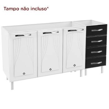 Balcão Star 1,60m 3 Portas 4 Gavetas Sem Tampo - Telasul