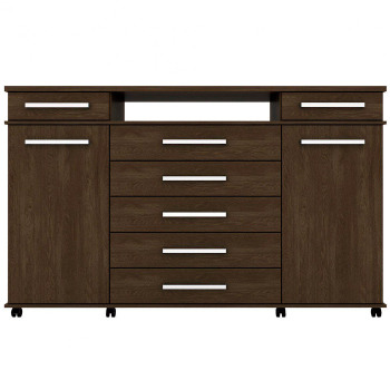 Sua estrutura em MDP, que garante maior resistência e durabilidade para o móvel. E tem como ficar melhor! Ela conta com corrediças e dobradiças metálicas que proporcionam a abertura das gavetas e portas ainda mais suave e sem impactos. E mais seus rodízios contribuem para a melhor movimentação do móvel.