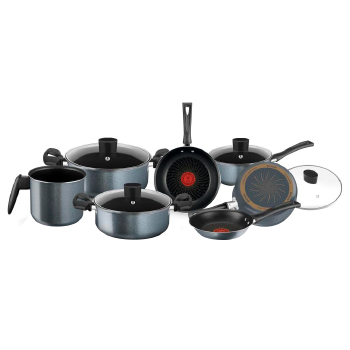 Conjunto de panelas 7 peças Tipo de Material: Alumínio Revestimento Interno: Revestimento Antiaderente Intensivo Revestimento Externo: Revestimento Antiaderente Base: Limpa Fácil Material do Cabo/Asa: Baquelite Cor: Grafite