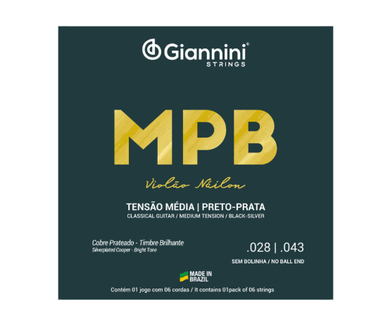 O encordoamento para violão náilon Giannini MPB GENWBS é indicado para músicos que gostam de cordas com uma pegada média.