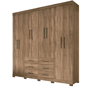 CARACTERÍSTICAS: 08 Portas com dobradiças metálicas 09 Prateleiras 03 cabideiros em alumínio 06 Gavetas com corrediças metálicas Puxadores em ABS Pés