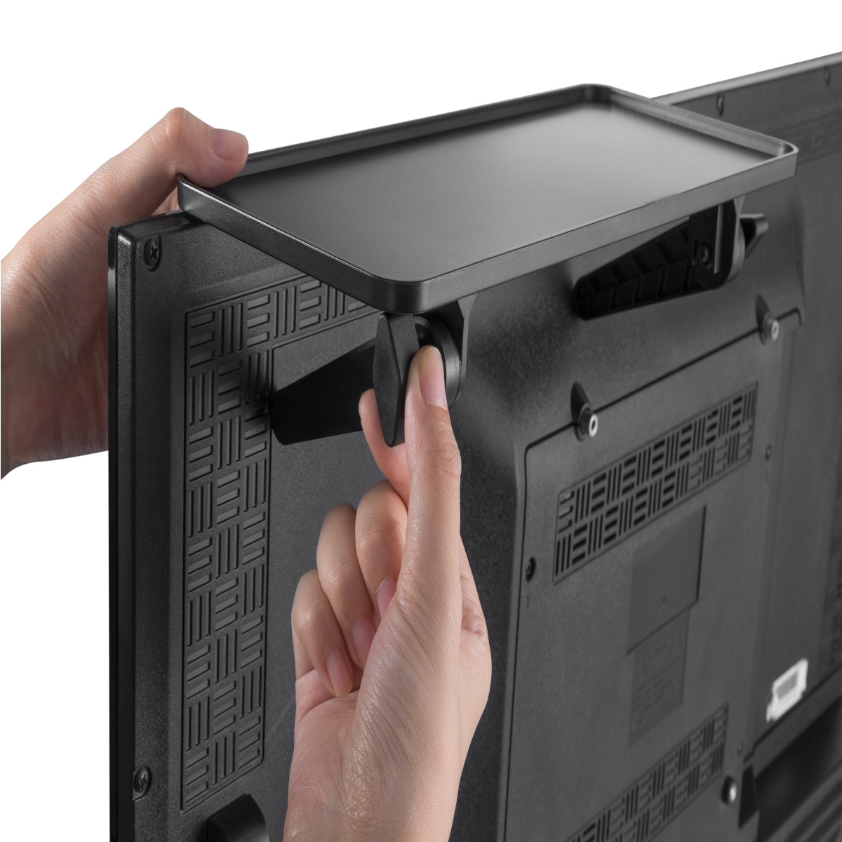 O suporte para conversores, receptores ou acessórios semelhantes da Multivisão tem fácil encaixe e pode ser instalado com facilidade. O diferencial desse suporte é que você não precisa furar a parede para prende-lo, basta ajustar o encaixe do suporte na televisão. Devido ao sistema de braço regulável, é compatível com todos os modelos de TVs e monitores desde que possuam borda para apoio do suporte.